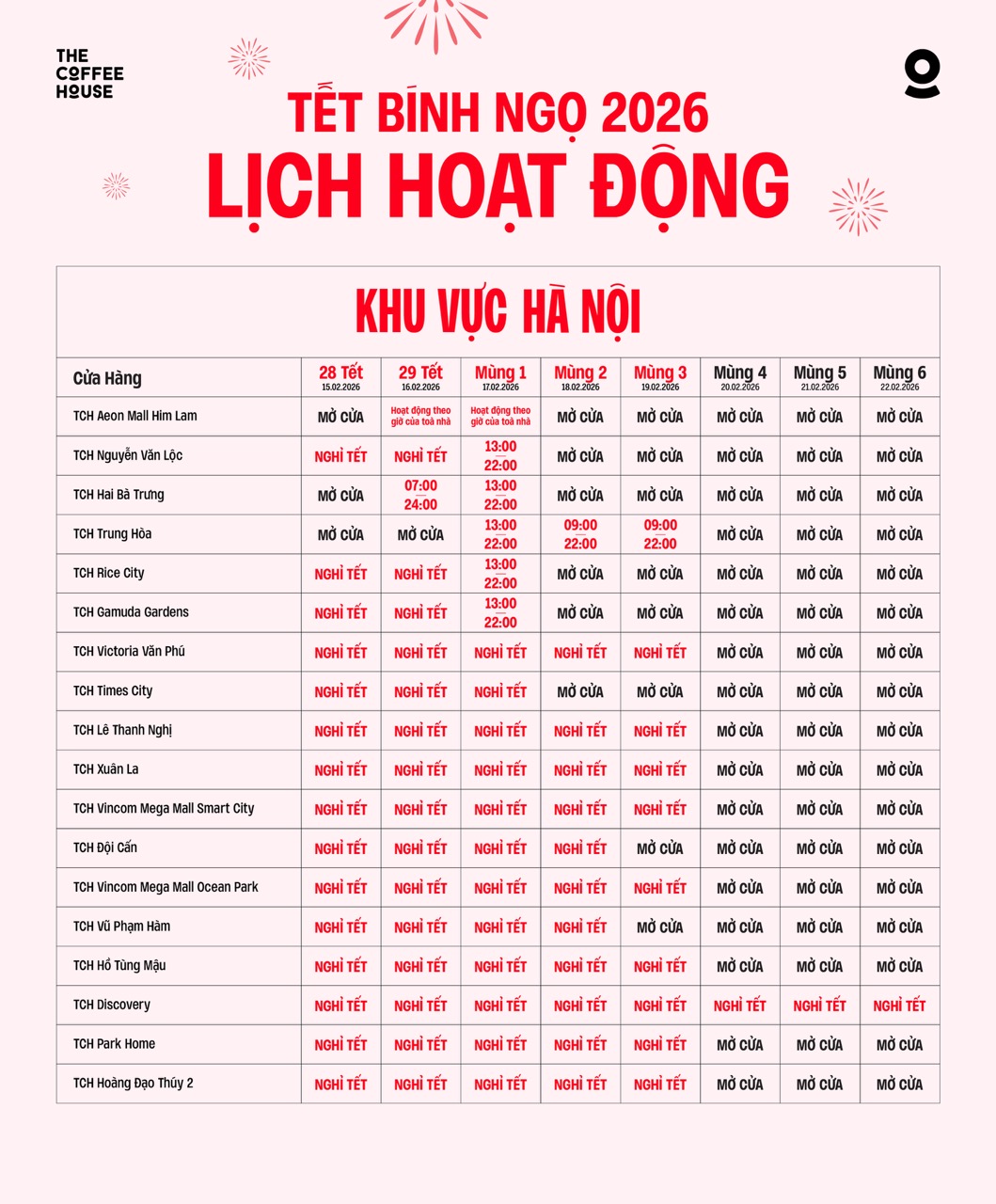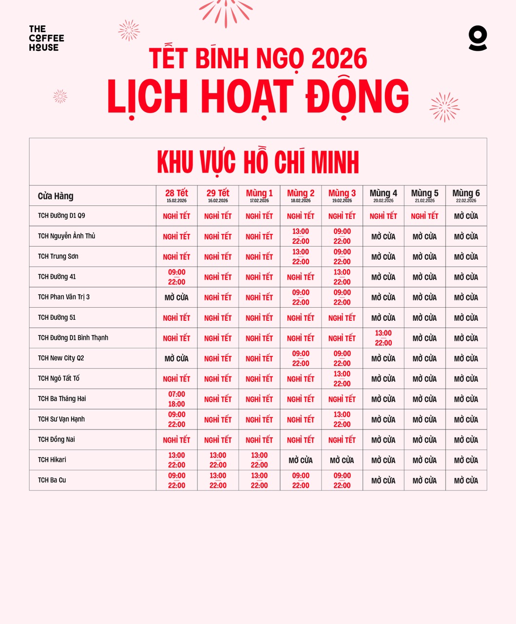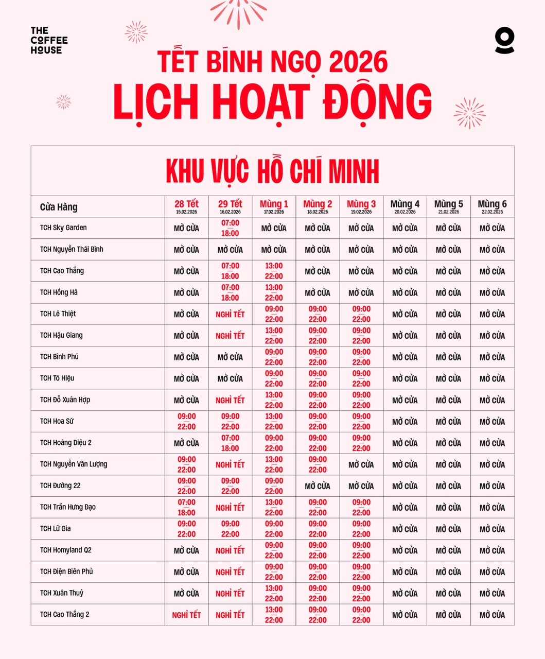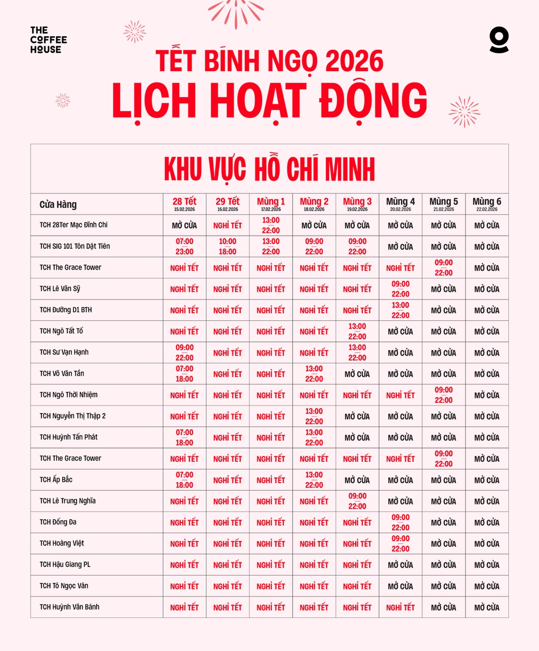 The Coffee House – Thông báo lịch hoạt động Tết Nguyên Đán 2026